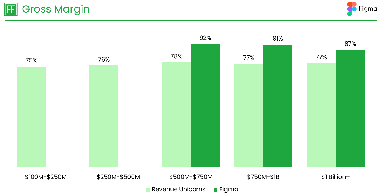 Figma’s gross margin has been greater than the Revenue Unicorn median across their entire lifecycle. Monday.com had similar gross margins on the journey from $100 Million to $1 Billion+ in revenue.