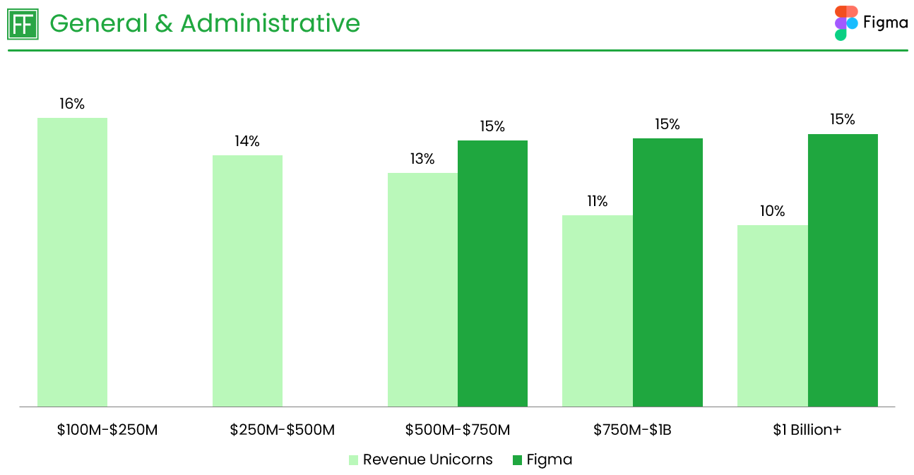 Figma’s general and administrative expense remained above the median Revenue Unicorn on their road to $1 Billion in annual revenue. Figma’s spend on general and administrative expense was similar to Procore and Okta.